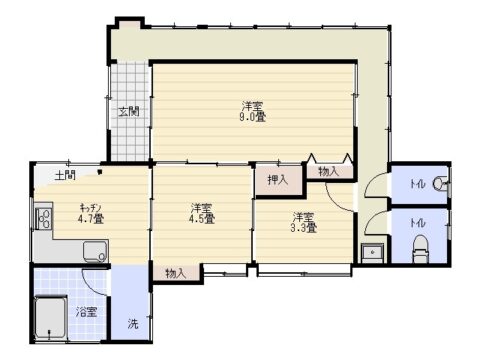 | 間取内容 | 洋室 9畳 洋室 4.5畳 洋室 3畳 DK 4.7畳 | ||