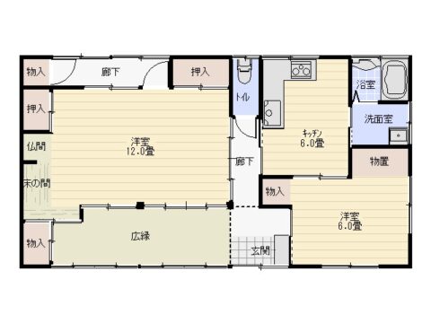 | 間取内容 | 洋室 6畳 洋室 12畳 DK 6畳 | ||