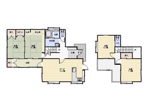 間取内容 洋室 14畳 1階  和室 6畳 1階  和室 6畳 1階  洋室 7畳 2階  洋室 6畳 2階