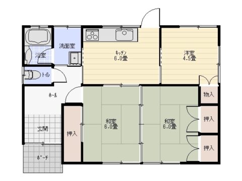 | 間取内容 | 洋室 4.5畳 和室 6畳 和室 6畳 DK 6畳 | ||